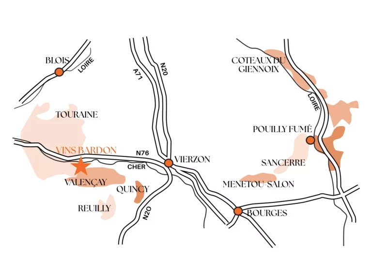 L’Appellation d’Origine Protégée (AOP) Valençay est une désignation viticole prestigieuse située dans le Centre-Val de Loire, dans le département de l’Indre. Cette appellation, qui bénéficie d’un terroir unique, produit des vins blancs et rouges réputés pour leur finesse et leur complexité. Les vins blancs de Valençay sont principalement élaborés à partir des cépages Sauvignon Blanc et Chardonnay, offrant des arômes frais et fruités, tandis que les rouges sont souvent issus du Pinot Noir, Malbec et accessoirement Gamay avec des notes élégantes et équilibrées. Le terroir de Valençay, composé de sols argilo-calcaires et de silex, contribue à la qualité distinctive des vins, apportant minéralité et fraîcheur.